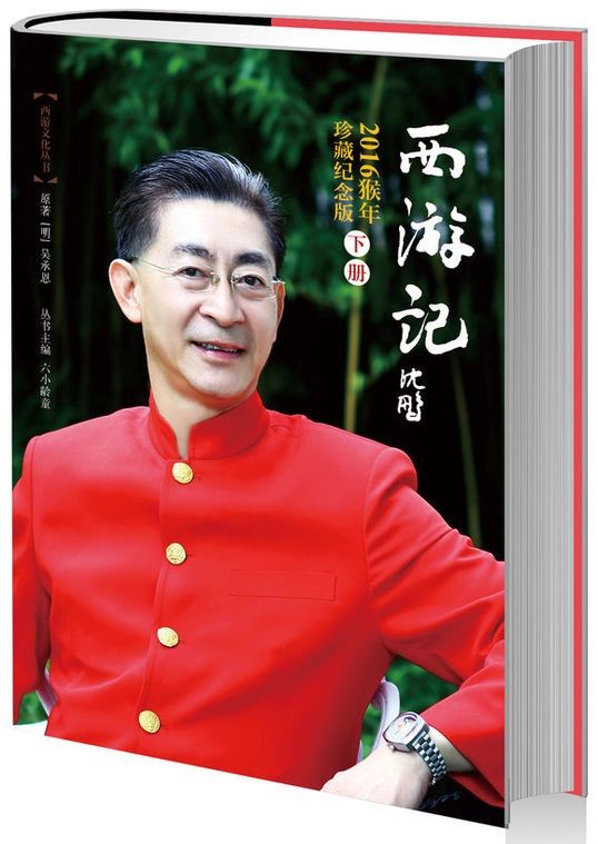 在其主編的《西遊記》中,書的封面直接印了自己的照片。網友對其質疑的原因是,你只不過是一版西遊記的扮演者,並不是吳承恩作者本人,有什麼資格把自己的照片原封不動的印在《西遊記》這部名著的封面上?