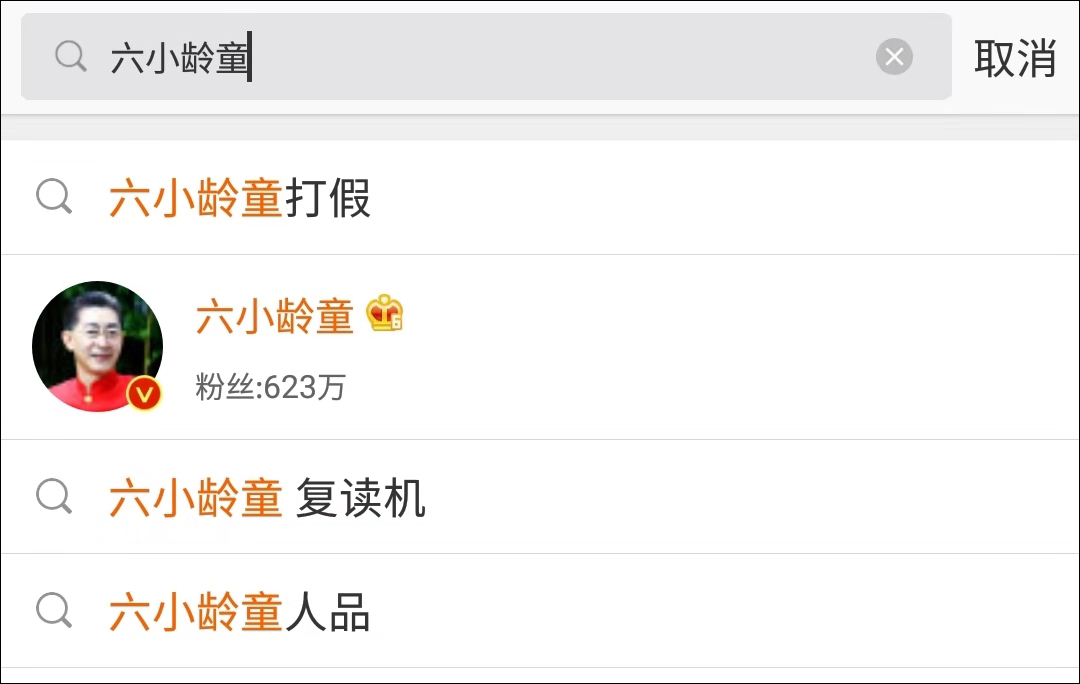 現在在微博搜索六小齡童,微博的推薦搜索是這樣的。
