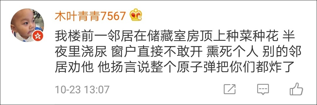 有不少網友留言,自己住的小區裏也有這樣的奇葩鄰居。