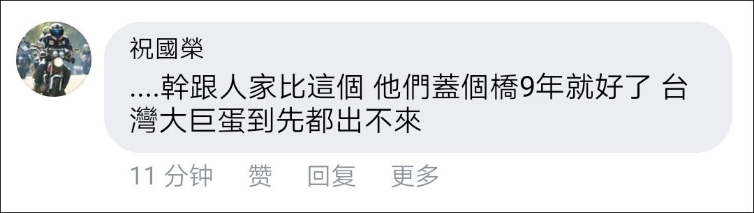 有人留言説,台灣的大橋明明是第一,沒辦法吹而已。