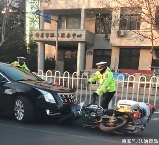 2017年12月25日,即墨市一豪車將前後車牌遮擋,被民警查扣後不但不配合檢查,反而將執勤民警的警用摩托車撞翻,致使民警受輕微傷,肇事者隨後逃之夭夭
