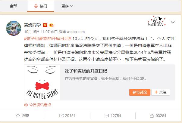 這兩天,“朱軍性騷擾案”將在10月25日開庭的消息一度刷屏,又被大家所熱議。據媒體報道,10月23日,朱軍性騷擾案當事人弦子與其代理律師前往北京市海淀區復興路人民法庭,就人格權糾紛申請立案起訴朱軍,並且要求朱軍本人出庭。此案在10月25日開庭。
