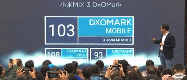 於是小米相機部門展現生存欲。現場,雷軍公佈了MIX 3的成績:整體103分,拍照108分。