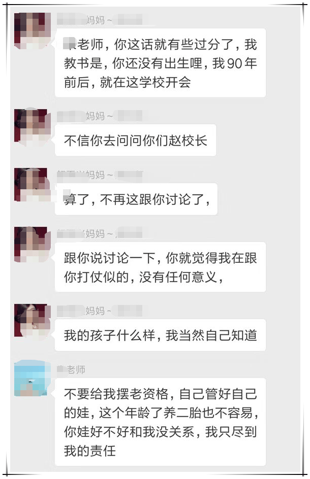 家長提到自己在90年代就是老師了,但語文老師則説“不要給我擺老資格”。