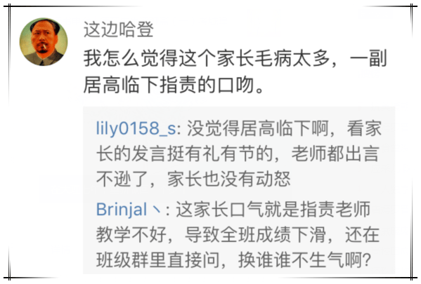 有覺得家長居高臨下的,有覺得老師出言不遜的。