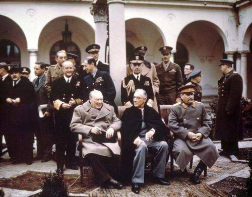 此後,羅斯福與斯大林在談判桌上總是所向披靡。羅斯福曾向擔任勞工部長的老朋友柏金斯談過他在德黑蘭期間是如何與斯大林建立起這種準“哥們”友誼的。他説在會上他總是刻意與丘吉爾保持距離,以致“丘吉爾臉紅氣脹地皺眉蹙額;他越是這樣,斯大林就越是微笑。最後,斯大林忍不住爆出大笑。三天來,我第一次見到陽光!我先忍住了,後來終於和斯大林笑成一團。這時,我開始稱呼他為‘約瑟夫’。他笑着走過來和我握手。從此我們的交情又深化為個人關係,我們可以像兄弟般交談”[14]。在雅爾塔的五天會議中,羅斯福就更是“一直避免單獨和丘吉爾見面”。哈里曼認為“這是羅斯福的一種戰術,而非對首相的有意輕視”[15]。