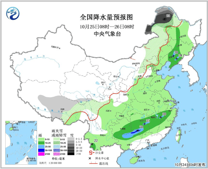 部分地區(圖中灰色區域)已經步入下雪時節。圖片來源:中央氣象台