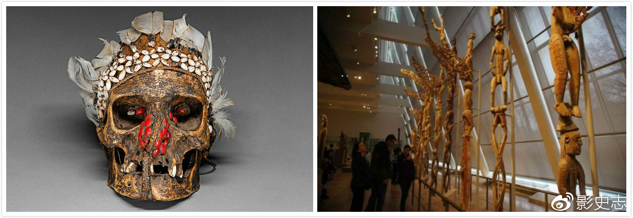 食人部族阿斯瑪特的彩塗人頭骨&原始人美術館中展出的阿斯馬答人祖先柱