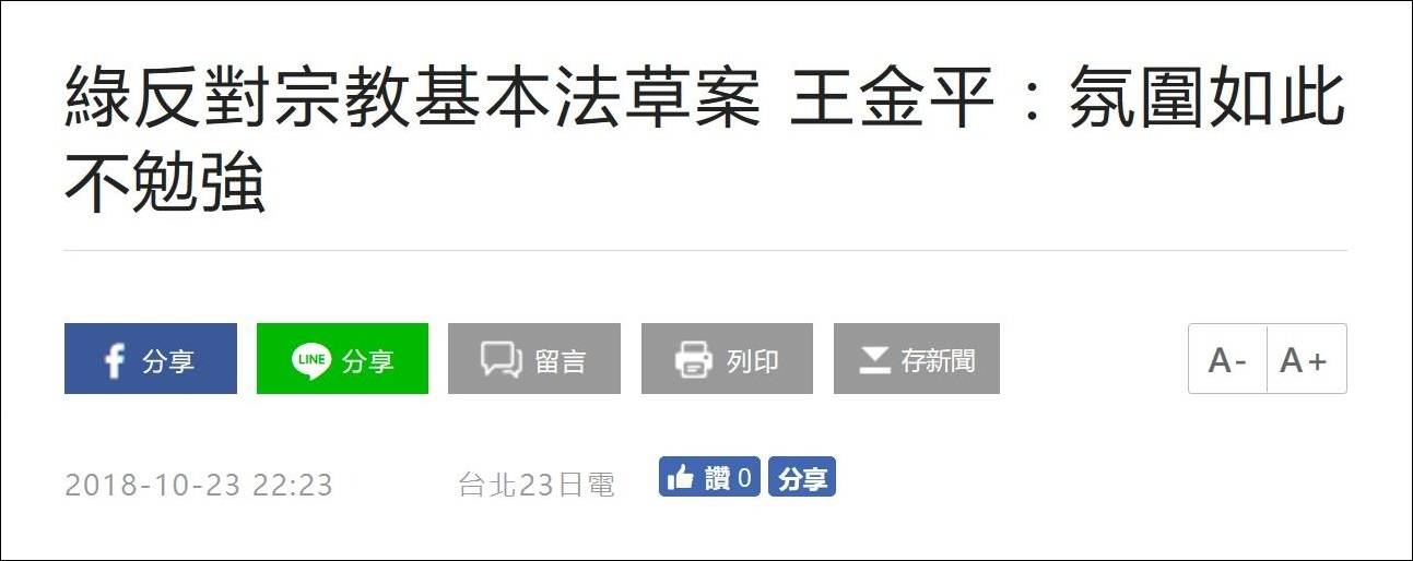 據報道,“宗教基本法”草案系跨黨派“立委”王金平、黃昭順、馬文君和林岱樺等33名“立委”共同提出。
