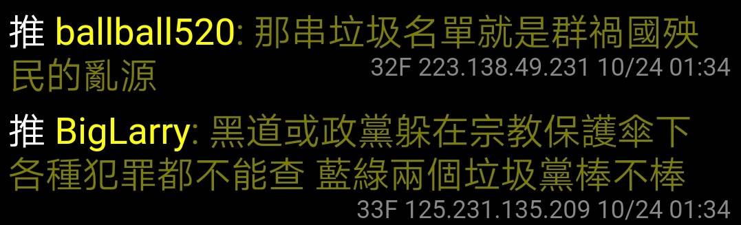 “垃圾立委名單=這些黑暗勢力的傀儡。”