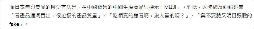 台媒也提到了,由於無法使用“無印良品”標識,日本無印良品的解決方法只有一個,那就是隻標識“MUJI”不標“無印良品”。