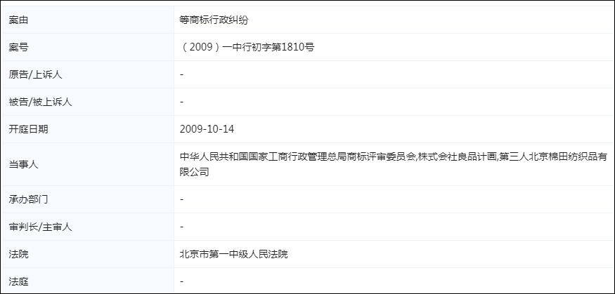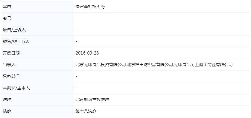 在該公司的司法情況中,我們可以看到其分別在2009年與2016年牽扯上與日本無印良品方面的商標糾紛。由此可以判斷,北京棉田紡織品有限公司就是網上被爆的的北京“無印良品”。
