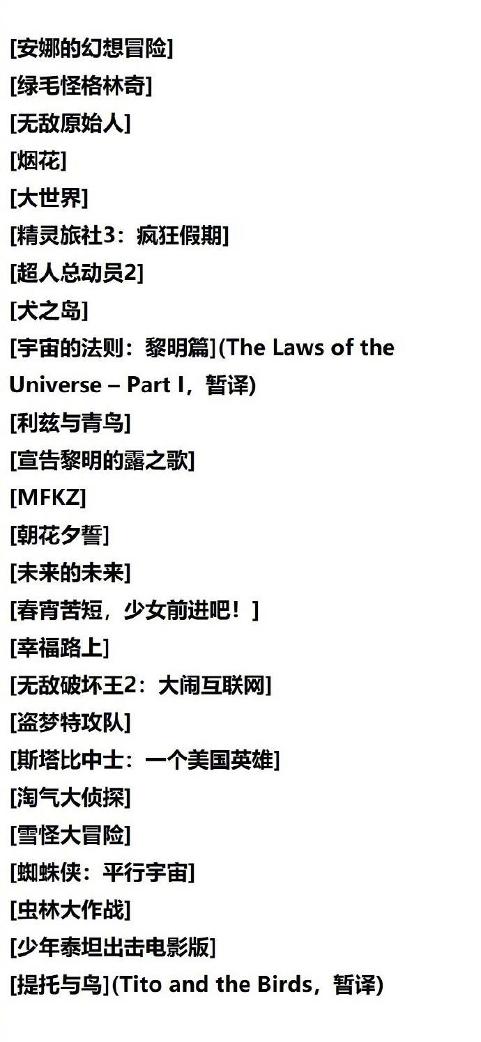 美國時間10月24日,第91屆奧斯卡獎公佈了最佳動畫長片的角逐名單,共有25部作品入選。其中內地《大世界》、台灣《幸福路上》均為華語電影。此外,熱門動畫片《犬之島》《超人總動員2》《無敵破壞王2:大鬧互聯網》也在名單中。