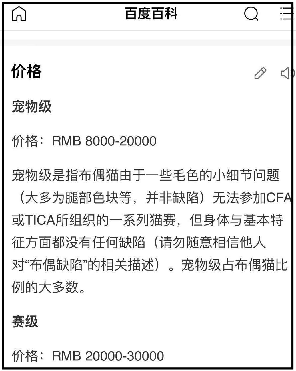 然後這是它在國內的價格。8000起價,但目前正規貓舍的貓咪幾乎沒有低於一萬的,普遍都在一萬五到兩萬之間,至於再特殊一點的品種,那就真的不封頂了。