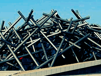 這個建築同樣很巨型,佔地一萬多平米;“長短不一的杆件通過搭接、組合,產生富有張力的抽象形式”雖然看起來很醜,但故意擺成這樣,八成是為了搭建某種奇異的、能夠在外太空也被監測到的磁場空間 ▽