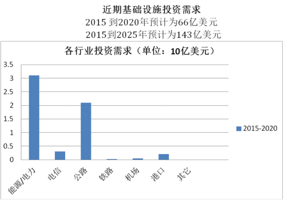 根據世界銀行的統計數據,發展中國家目前每年基建投入約1萬億美元,但要想保持目前的經濟增速和滿足未來的需求,估計到2020年每年至少還需增加1萬億美元。到2030年,全球預計將需要57萬億美元的基礎設施投資。