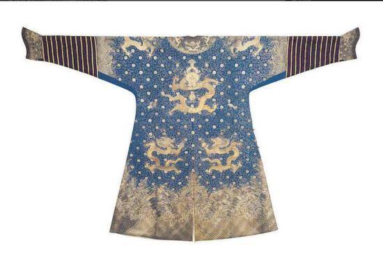 根據中新網的消息,11月8日,乾隆皇帝的一件“御製藍綢捻金銀繡金龍十二章吉服袍”將在倫敦拍賣。