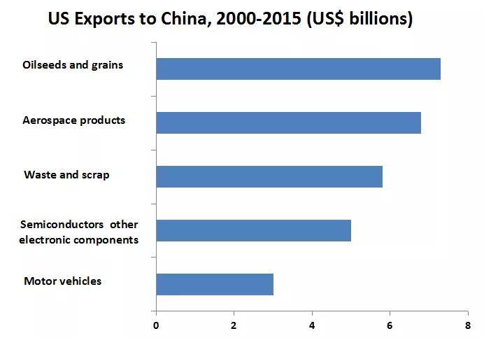 美國對華出口商品,除去第一位的農產品、第二位的航空航天產品,猜猜第三位是什麼?
