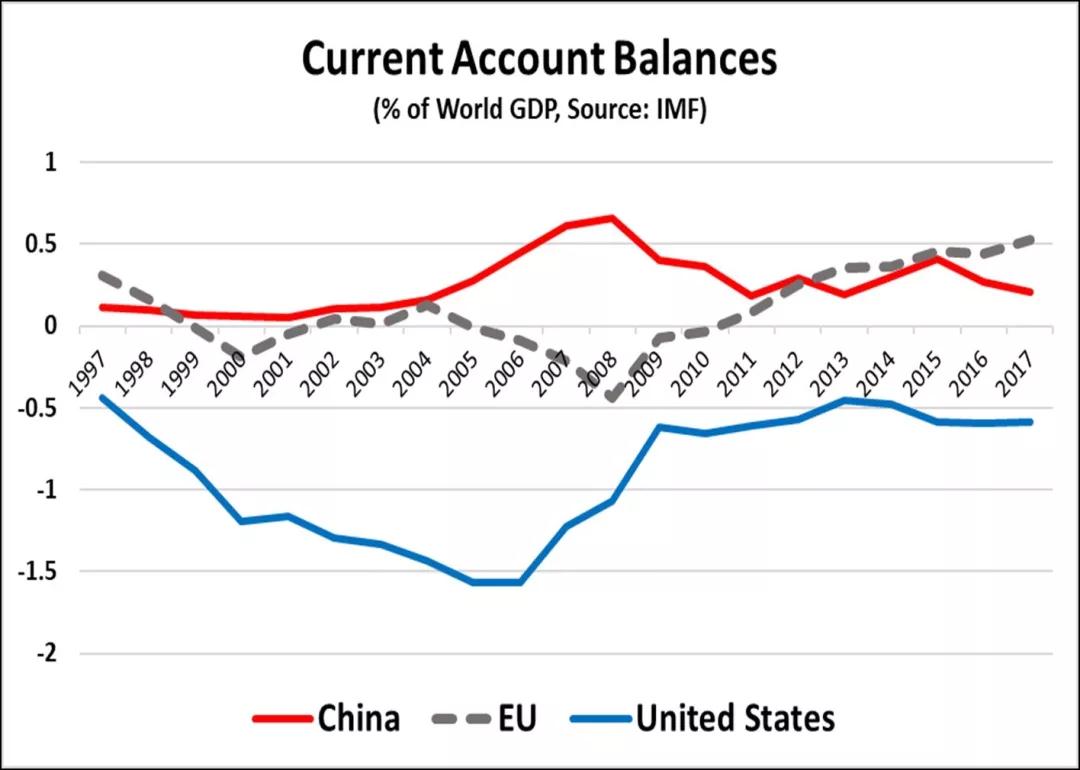 黃育川還用數據指出,中美各自的貿易平衡並沒有相關性。