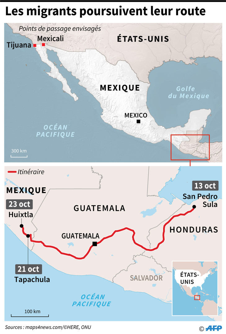 特朗普及其政府大動干戈去對付的並不是一支敵軍,而是一支由約7000名扶老攜幼的中美洲難民組成的“大篷車隊”:這支“大篷車隊”10月13日從中美洲國家洪都拉斯城市聖佩德羅蘇拉出發,徒步蹣跚向北,人數如滾雪球般不斷擴大,已由最初的約2000人,膨脹到如今聯合國所估計的7000人,其中僅兒童就多達1500以上。他們沿着太平洋沿岸緩慢向北,目的是一直走到數千公里外的美墨邊界,然後進入美國境內尋求庇護。10月23日他們的主力進入墨西哥南部恰帕斯州的馬帕斯特佩克,按照現在的速度,他們要這麼一直走至少一個半月才能走到美墨邊界的墨西哥一側——這意味着還要走3000公里。