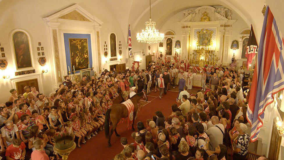 (人們在教堂為賽馬祈福)