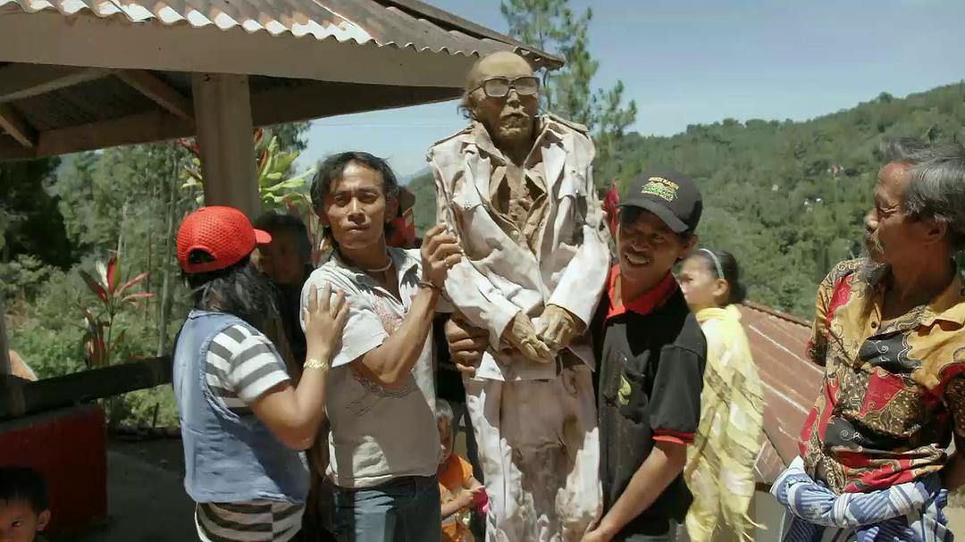 在印度尼西亞的Torajans村子裏,一個家庭為自己故去的父親借債17萬英鎊用來舉辦地球上最繁複的葬禮。而那位已故的父親,在家裏被如常侍奉到葬禮才下葬。15年後,他的屍體被挖出來,供親人們憑弔。如今的人們甚至會對着這具乾屍拍照發到朋友圈,以便不能回來參加這個儀式的親友們同樣有參與感。(下圖請做好心理準備)