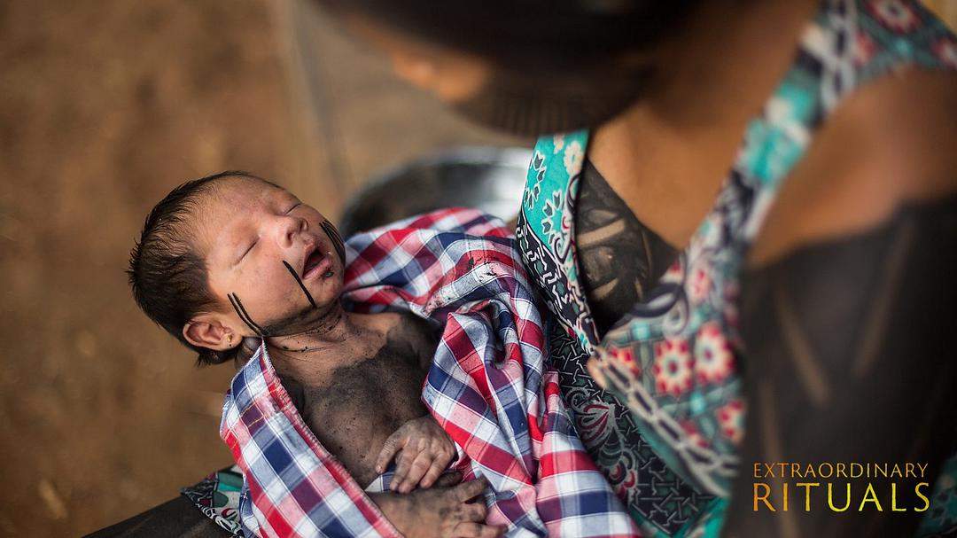 巴西的雨林裏,人們相信生產是非常兇險的過程,嬰兒可能會被已故的先祖帶走。於是一系列的儀式被髮明出來以保護新生兒:用藥草給它洗澡,穿耳洞以打開它對世界的感官,用植物染料畫在他身上以表示家人對它的愛。(這裏用“它”是因為在很多文化中嬰兒只能算“半人”,它們需要經過一系列成人禮才能成為完整的人。)