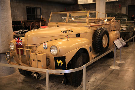展區有亞歷山大元帥的指揮車。哈羅德·亞歷山大是二戰英軍名將,在敦刻爾克,他是與蒙哥馬利並列的英軍軍長,乘坐最後一艘驅逐艦離開敦刻爾克的灘頭。日軍入侵緬甸時,他是駐緬英軍司令,主要負責在政治層面與史迪威協調,軍事指揮主要是斯利姆中將負責的。在北非,他是蒙哥馬利的上司,對阿拉曼的勝利“負領導責任”。美英聯軍在突尼斯會合後,他擔任美英聯合的第18集團軍羣司令,直接向艾森豪威爾報告。在西西里登陸時,轉任第15集團軍羣司令,下轄蒙哥馬利的英國第8集團軍和巴頓的美國第7集團軍(後由克拉克的美國第5集團軍接替),以後一直在意大利戰區,最後負責所有地中海戰區的盟軍行動。由於傑出戰績,亞歷山大在1946年3月1日被英皇喬治六世封為子爵,這是不同於勳爵而可以傳代的“真正”爵位。戰後,他被任命為加拿大總督,他也是最後一個來自英國的加拿大總督,此後的加拿大總督都是加拿大出生的。