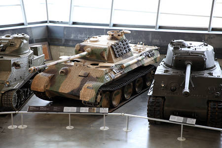 這輛“黑豹”是1945年在德國繳獲的,狀態完好。表面塗了一層防手雷泥,粗糙的表面使靠磁性粘住坦克表面的反坦克手雷不易粘住。這東西是二戰德國坦克的特色,現在沒人使用了。在博物館的修復中,特意用顏色有所不同的防手雷泥對原裝和修復部分以示區分,這種修舊如舊的嚴謹值得讚賞。