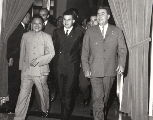 圖為鄧小平(左)齊奧塞斯庫(中)和勃列日涅夫(右)的合影