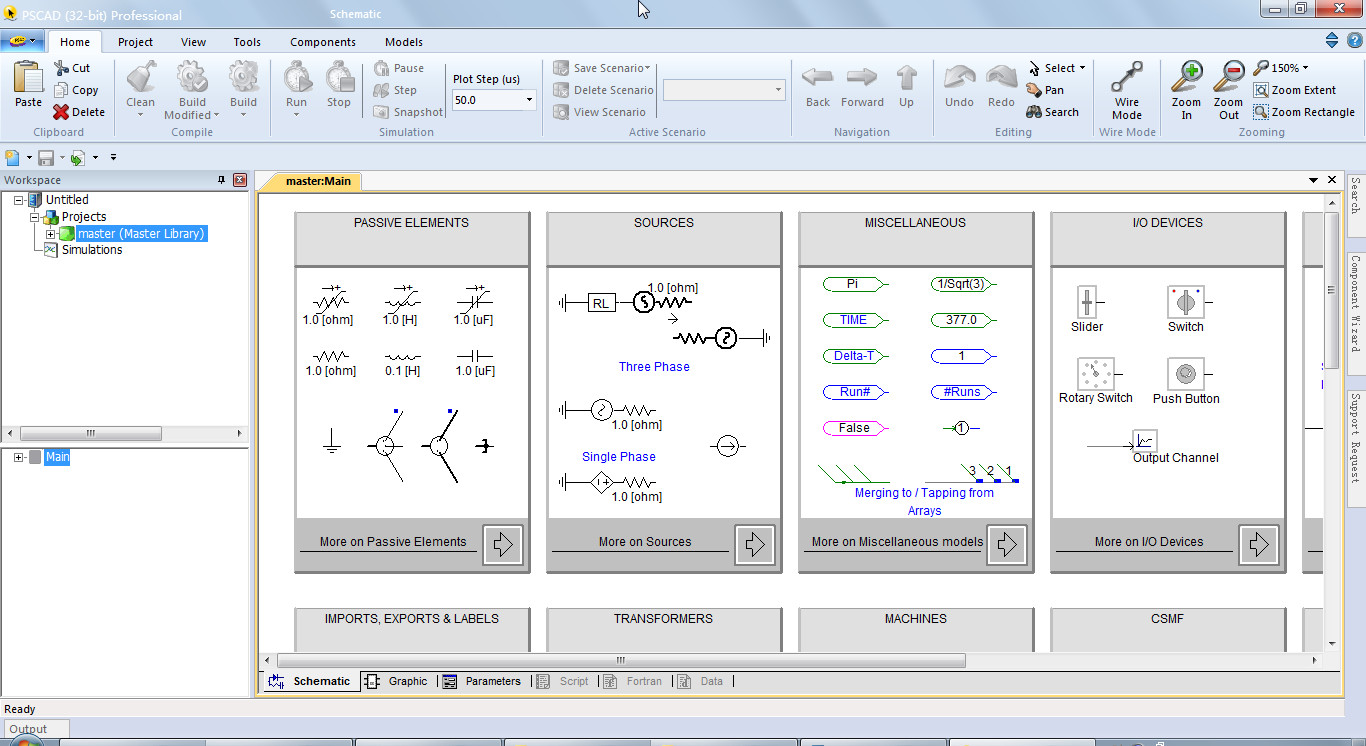 PSCAD/EMTDC由加拿大曼尼託巴水電公司開發,採用時域分析求解完整的電力系統及微分方程(包括電磁和機電兩個系統)。更值得一提的是它允許用户在一個完備的圖形環境下靈活地建立電路模型,進行仿真分析,用户在仿真的同時,可以改變控制參數,從而直觀地看到各種測量結果和參數曲線,極大地方便用户提高仿真的樂趣和效率。PSCAD裏面提供豐富的元件庫,從簡單的無源元件到複雜的控制模塊,以致電機、FACTS裝置、電纜線路等模型都有涵蓋。