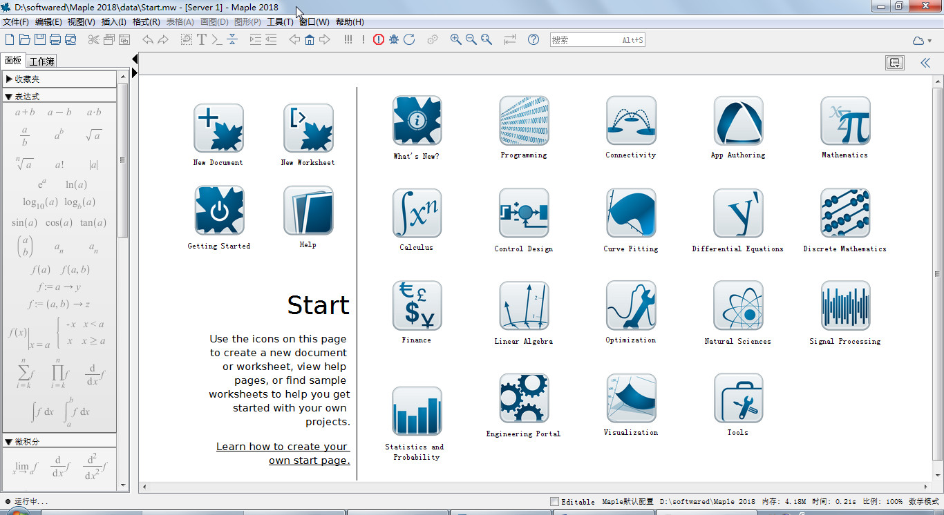 Maple內置超過5000個符號和數值計算命令,覆蓋幾乎所有的數學領域,如微積分,線性代數,方程求解,積分和離散變換,概率論和數理統計,圖論,張量分析,微分和解析幾何,金融數學,矩陣計算,線性規劃,組合數學,矢量分析,抽象代數,泛函分析,數論,複分析和實分析,抽象代數,級數和積分變換,特殊函數,編碼和密碼理論,優化等。