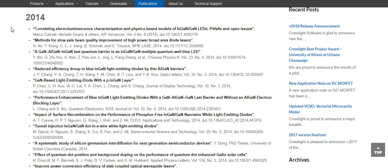 Crosslight軟件在學術界有重要的地位和作用,以下是使用Crosslight軟件發表的部分publications。