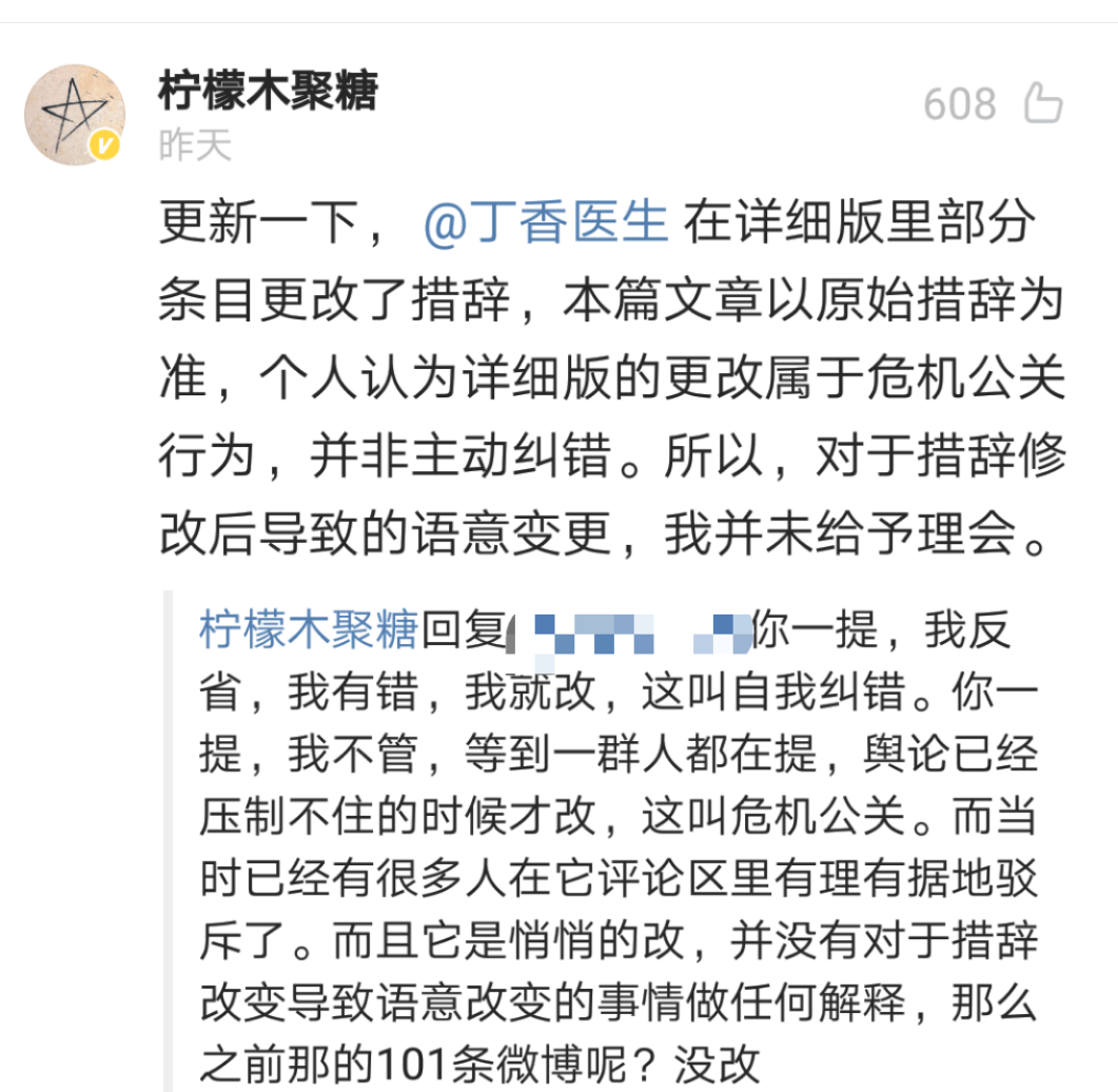 博主@檸檬木聚糖發佈了一篇文章,説@丁香醫生的闢謠帖裏面本身就有不對的地方。