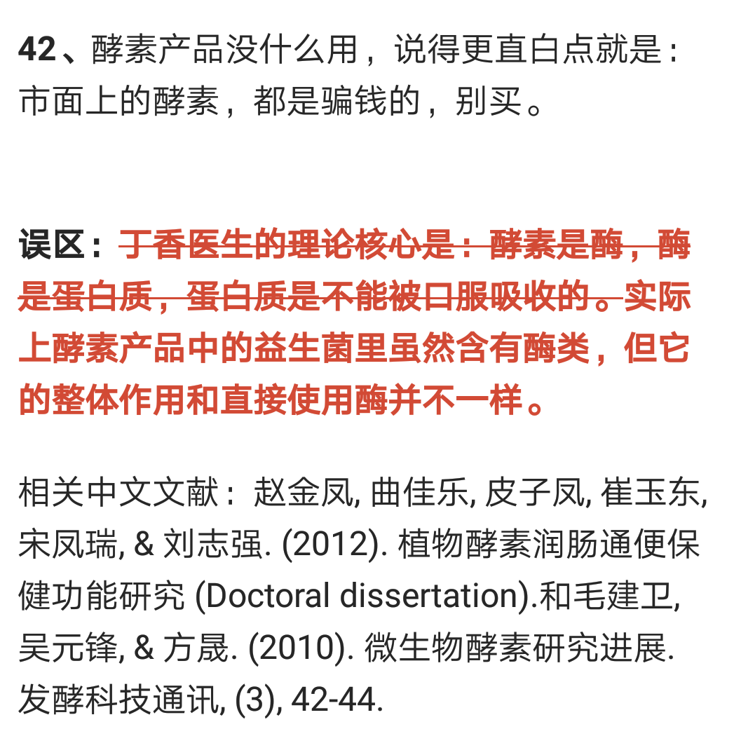 他説丁香醫生理論核心是:酵素是酶,美是蛋白質,蛋白質不能被口服吸收