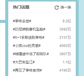 微博上關於這幾條熱門新聞的搜索熱點是這樣子的。