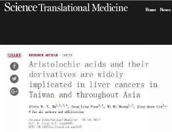 文章的作者們來自新加坡,他們通過大量例子(1400多肝癌標本)揭示了亞洲地區肝癌和傳統中草藥之間的關係。分析發現,亞洲人羣的肝癌和馬兜鈴酸導致的基因突變具有高度相關性,其中大陸地區和台灣最高。