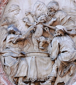 歐洲反猶傳統由來已久,這是中世界的雕刻,述説猶太人慣於偷小孩用於血祭的事情。猶太人沒有這樣的傳統,這是典型反猶捏造之一