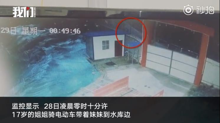水庫監控顯示,當天凌晨0時49分許,姐姐騎着電動車帶着妹妹來到水庫邊。在稍後2時許,姐妹雙雙跳水自盡。