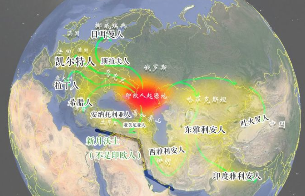 我在之前的答案裏講過,其實現在世界上,歐洲幾乎所有民族,以及東方的伊朗、印度等地,都是一個曾遊牧於南俄、烏克蘭等地的一個原始民族——原始印歐人,也就是上圖裏那個深紅色的地方。不同於如前面所講的華夏民族一直和周邊民族的融合,這個小小的民族開始迅速的擴散分裂,其中一支被希勒特叫毀了的分支——雅利安人,就入侵了印度河,並進入了南亞半島腹地,開啓了“吠陀時代”,也就是現在印度的前身。
