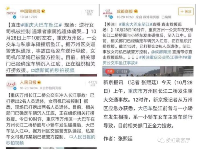 多家媒體發佈新聞稱“事故系女司機逆行所致”