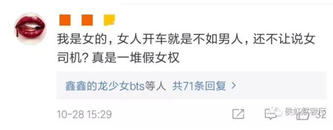 “又是女司機,呵呵。”“劃重點,女司機。”“看到女司機就害怕”“母司機”“娘們司機”“白帶司機”……