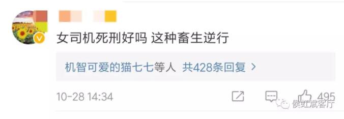 沒必要再去重複這些惡毒的咒罵了;假如真是針對具體的犯案司機倒也罷了,畢竟是害得多條人命命沉江底的肇事者;但是,成千上萬條評論裏,我就沒有看到一條評論是稱其為“司機”的,全都稱“女司機”,而且,一定要強調“女”。