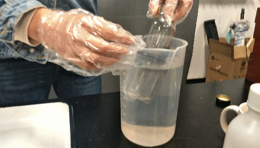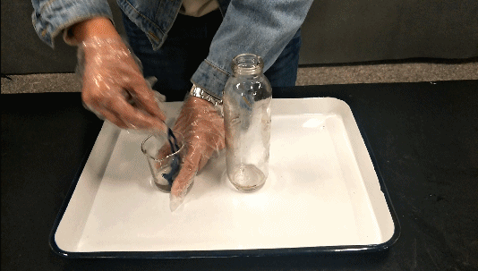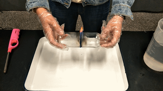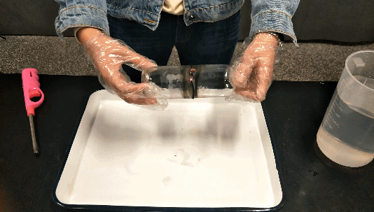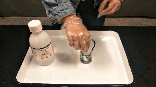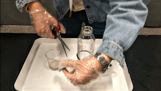 所標杯、打火器、玻璃瓶、一大杯涼水、乙醇(酒精)、小燒杯、棉繩、砂紙、剪刀、檢查手套