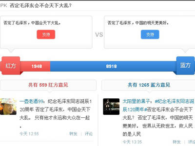 毛主席誕辰120週年時,章立凡曾在微信新浪微博發起過一輪投票。章立凡發起的話題為:否定了毛澤東,中國的未來怎樣?他給出了兩個選項供網友選擇:1、否定毛澤東,中國會天下大亂;2、否定毛澤東,中國的明天更美好。