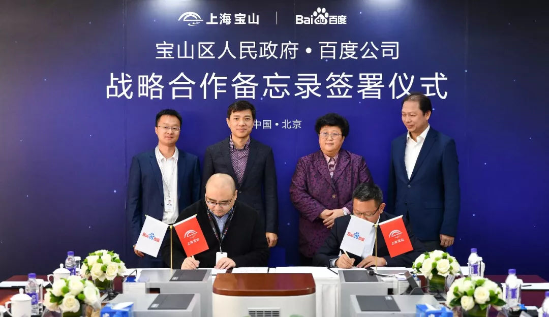 10月31日,百度與上海市寶山區政府簽署戰略合作備忘錄,雙方將共同推動人工智能賦能產業發展,提升城市智能化治理水平,將寶山區打造成為智能城市示範區和人工智能產業集聚高地。