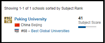 比如北大雖然是中國第二,世界68,但是有好幾個單科是在前30的
