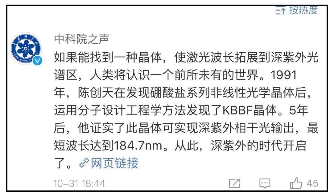 今天,中國科學院的官方微博@中科院之聲,發佈了中科院院士陳創天老先生逝世的訃告