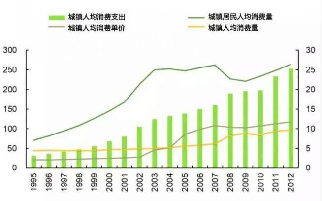 在市場方面,據統計顯示低級別消費市場增長強勁。當前農村人均消費量僅達到城市消費量 2000 年初水平,具備很強的上升空間。
