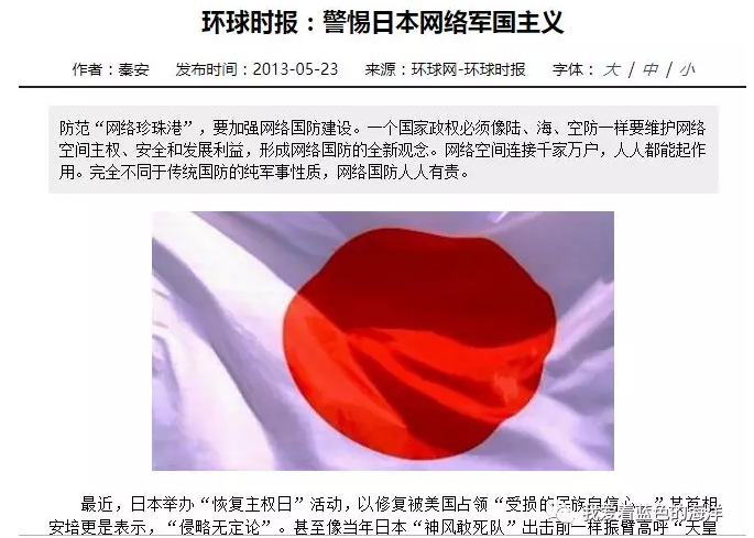 該文並聲稱,中國社會應該〝剋制對日本復活軍國主義的想像〞,不要總是拿日本可能重新侵略中國的風險來〝嚇唬自己〞。